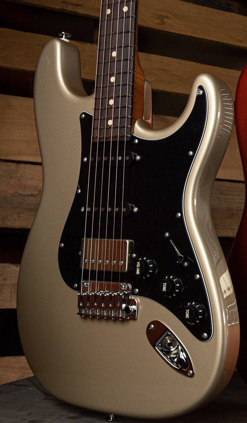 The Classic S Metallic guitars come in an HSS configuration, with low noise Suhr V60LP pickups in the neck and middle position, and a Raw Nickel SSH in the bridge. Stainless steel frets and modern hardware like Suhr Locking Tuners and a Gotoh 510 Tremolo Bridge are also standard.