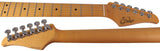 The Even C medium neck profile, medium stainless steel frets, and 9-12" compound fingerboard radius improve upon the playability of vintage instruments, resulting in a neck that is equally comfortable for chording and soloing. The one piece Maple neck provides improved stability and lends a classic woody tone to the instrument. Suhr Locking Tuners improve tuning stability.