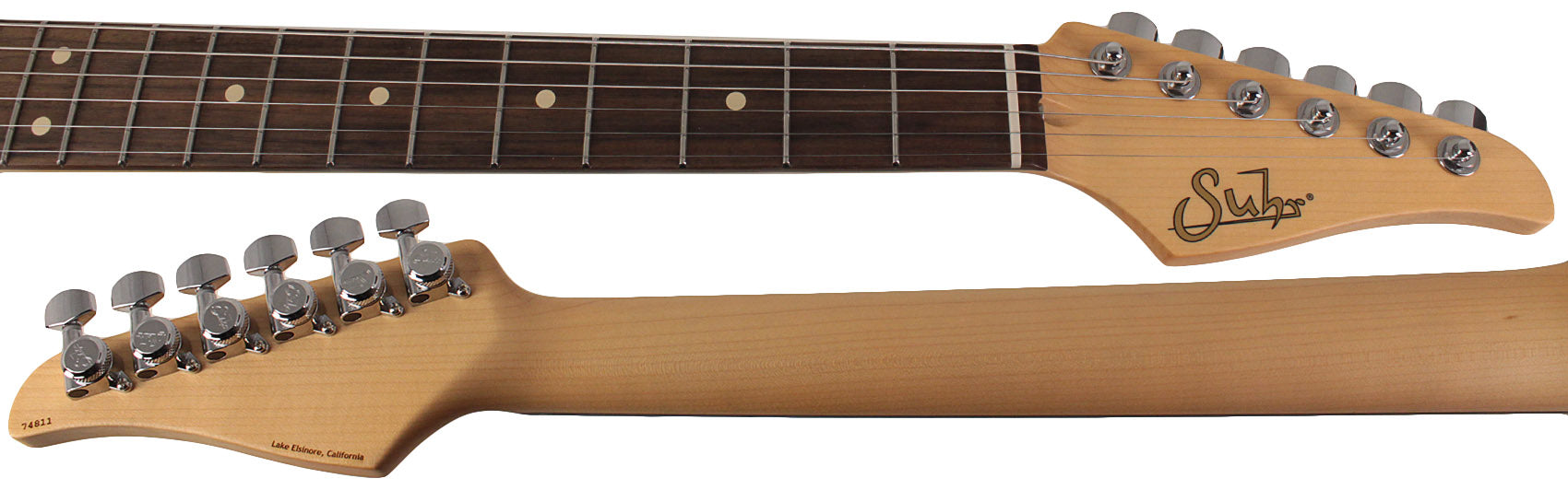The combination of Alder bodies and Maple with Indian Rosewood fingerboard necks, combined with the superior Suhr pickups give these instruments that classic tone expected from a Tele styled guitar, fitting nicely in every genre from country to rock.