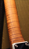 The neck and fingerboard is made from beautiful roasted flamed maple and features a vintage 60's standard shape with medium stainless steel frets. The frets feature rolled edges and a 9"-12" compound radius, great for smooth bends. These appointments create a comfortable, fast feeling neck with long lasting playability.