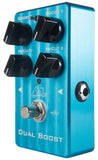Constructed with the goal of delivering unrivaled sound quality, in an easy to use package, the Dual Boost pairs the highest quality components with an on-board charge pump circuit that delivers a pure audio path, superior dynamics, and wide dynamic range, all from a single 9-volt battery or 9-volt regulated power supply.