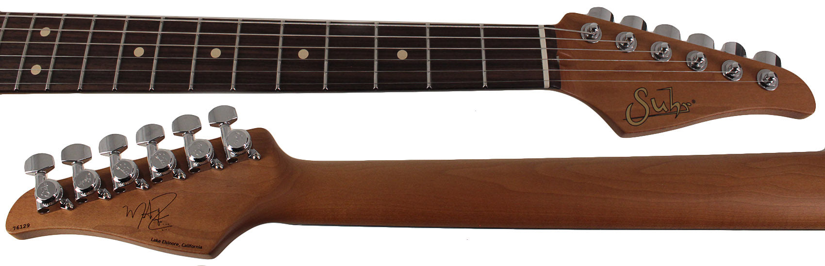 The Mateus Asato Signature Series in Antiqued Shell Pink features Suhr's Even C Medium neck profile, which is carved from silky-smooth satin finished Roasted Maple. The Indian Rosewood fingerboard features their 9"-12" compound radius and is appointed with 22 stainless steel heavy frets. A Gotoh 510 tremolo, ML single-coils, and Custom Alnico humbucker complete the specs. Each guitar comes with a special laser-engraved neck plate, light relic finish, Mateus’ signature on the back of the headstock, and is delivered in a classy black tolex hardshell case.