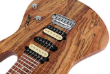 Utilizing an African Okoume Mahogany body for lighter weight and resonance, an African Khaya Mahogany neck for strength and stability, and a beautifully chosen maple top, a fat, well-balanced tone can be had that produces smooth sounds without any harsh overtones. The finishing process provides an unparalleled combination of protection and beauty, while the thinnest possible coats of finish are applied to allow the wood to resonate freely and still provide ample protection.