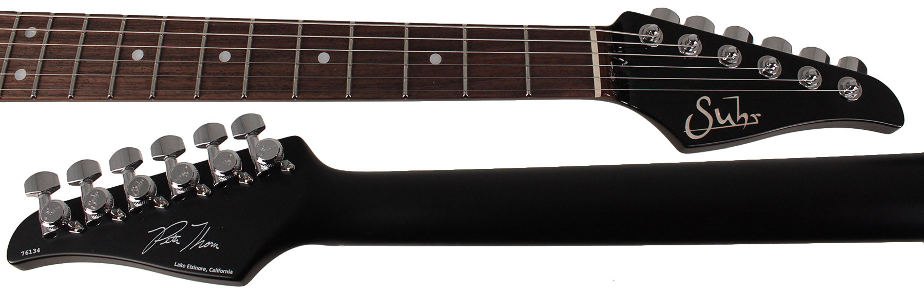 Pete has been a Suhr artist for over 10 years, and has previously partnered with Suhr to design and produce his signature PT100 amplifier and Thornbucker pickups. The guitar is based off of a custom spec Suhr Standard model that Pete has used extensively in the studio and on tour for the last two years. It’s equipped with Thornbucker pickups (with pickup rings, a first for Suhr) and a super comfortable and fast Even C Slim neck.
