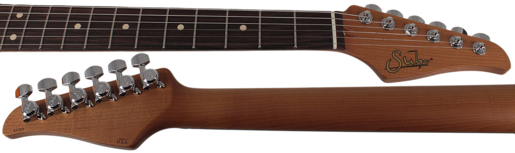 Each is built with a two-piece select alder body. Alder is known for its rich low and mid-range tonal qualities as well as its lighter overall weight, especially when roasted. Suhr takes great care in finishing the body with an ultra "Thin Skin" urethane finish, allowing for the wood to resonate freely while still providing plenty of protection to ensure the longevity of these guitars.