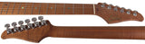 The one piece neck and fingerboard are made from beautiful roasted flamed maple and features a 60's C Vintage shape with medium stainless steel frets. The frets feature rolled edges and a 9"-12" compound radius, great for smooth bends. These appointments create a comfortable, fast feeling neck with long lasting playability.