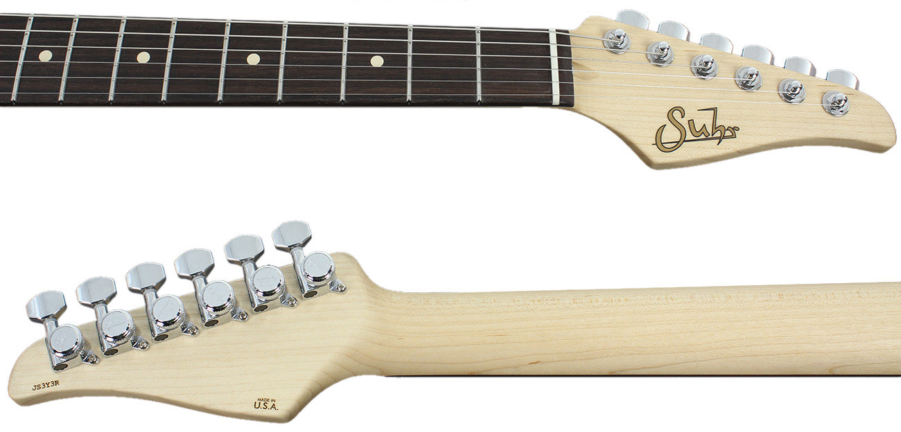 The Standard Pro is equipped with Suhr's much loved Even C Slim profile. Rolled edges and a 10-14" compound fingerboard radius offers a substantial, yet comfortable shape. The quartersawn Maple neck is finished in satin acrylic urethane, which provides protection from moisture and smooth playing. Each Standard Pro S also includes heavy stainless steel frets and by using the PLEK process on each instrument, it guarantees the best possible string action, optimized playability and eliminates intonation problems plagued by many guitars.
