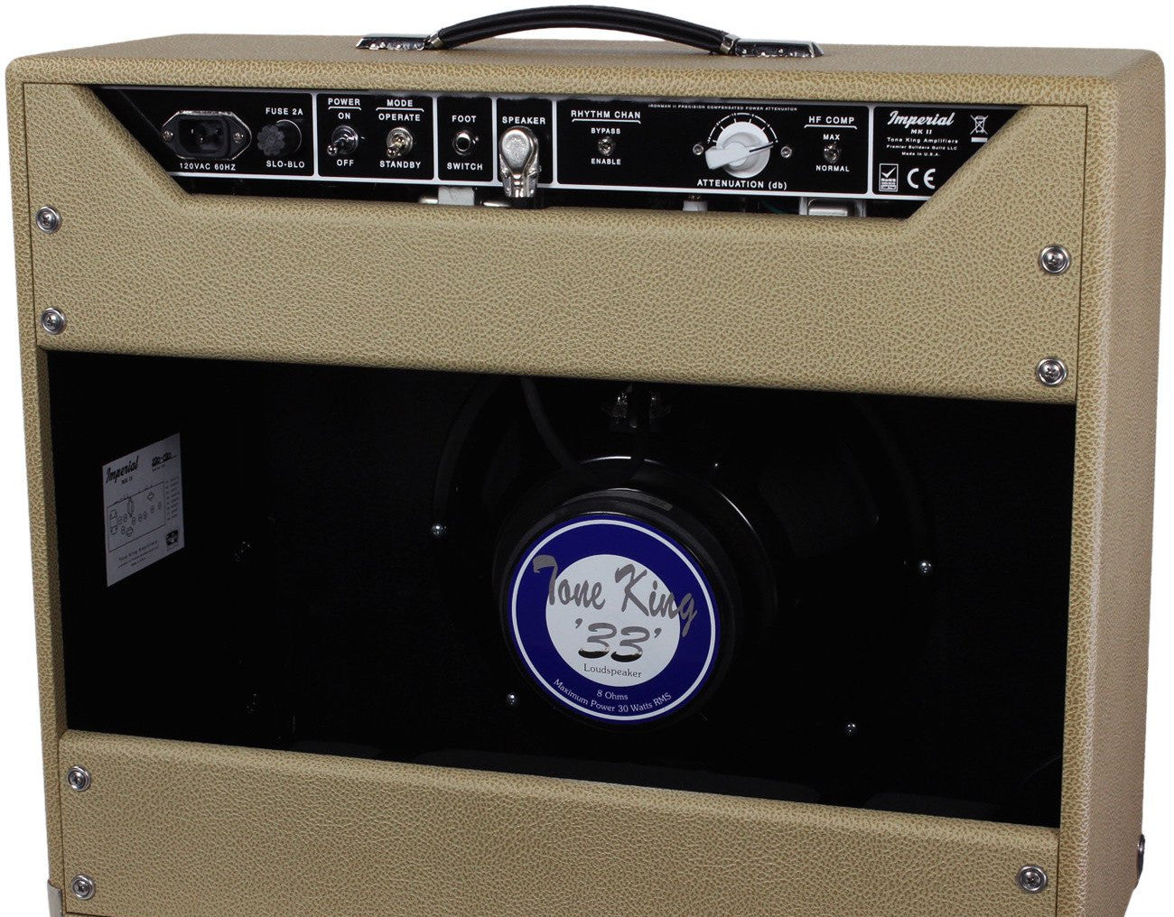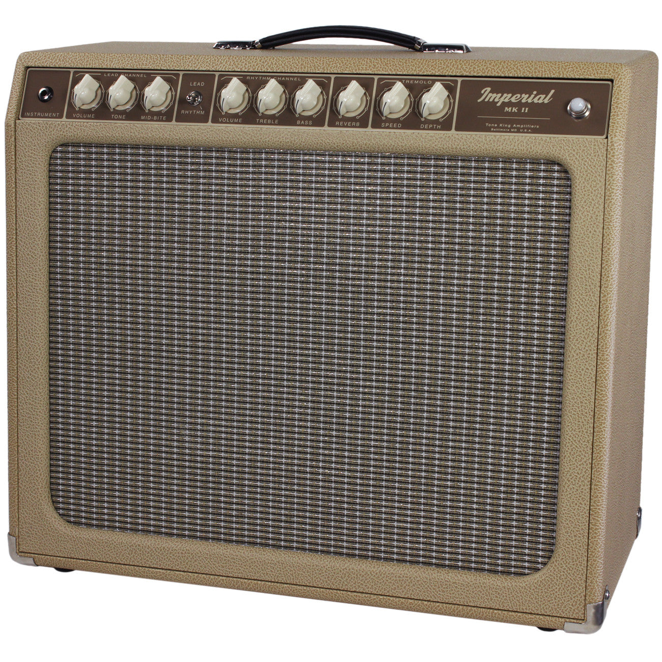 The Tone King Imperial Amp recreates the tone and vibe of a vintage Fender amp and builds upon that even further. This 20 watt, all tube, combo truly captures that classic blackface sound in it's rhythm channel. The tone is easily identified by the Princeton or Deluxe Reverb lovers, but with more of an organic feel, like a classic tweed deluxe. You get the expected shimmery cleans, but you also have the gritty overdrive that this type of amplifier is known for. With that, you get an improved ability to control the timbre and expression of the notes with your fingering and pick attack.