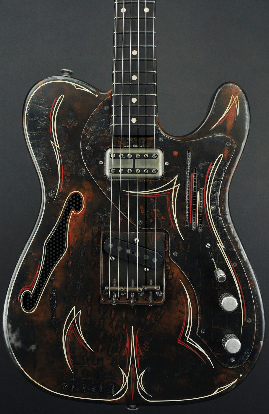 | Finish: | Rust-O-Matic w/ Pinstripe Body and Headstock Upgrade |
