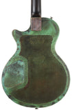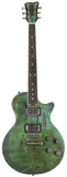 This SteelDeville features the Holey Metal Back Perforation which reduces the weight by 1/2 pound, Arcane Inc. Humbucker pickups in the neck and bridge positions, a Tone Pros Tune-O-Matic bridge, and the Titanic Green Snakeskin finish.