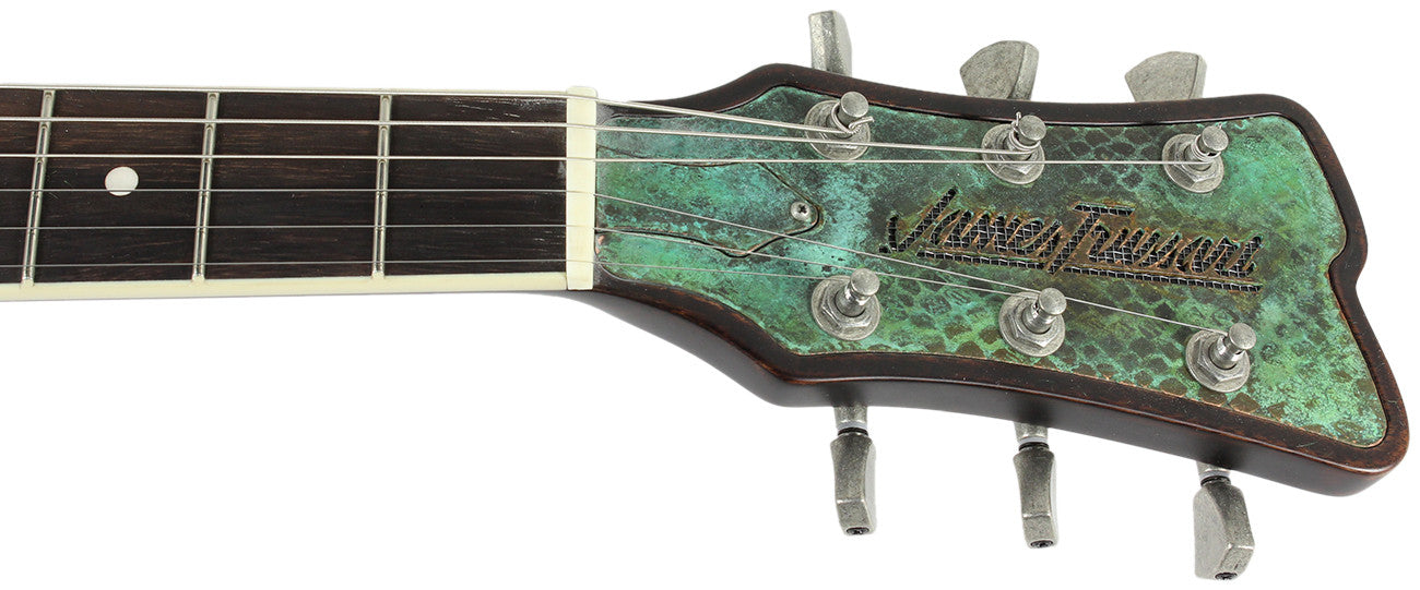 With the SteelDeville, James Trussart took the classic single cutaway shape that is all but iconic at this point and paired it with his exclusive hollow steel construction to form as much of a work of art as an amazing instrument. This type of construction, from the body to the recessed head cap which adds more mass to give more sustain, brings out many overtones normally only found with acoustic resonator instruments.