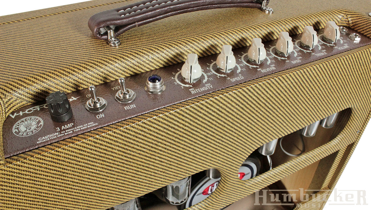 A combo amp featuring reverb and tremolo, The Regal is a pure, single-ended class A design that utilizes a new 'Adaptive Transformer Technology' that allows for the use of one or two power tubes at the same time. Therefore, operating power is rated from 5 watts to 35 watts; and at 5 watts, it's a REAL 5 watts, not some squashed approximation of 5 watts.